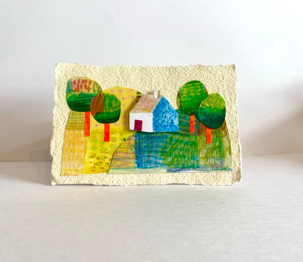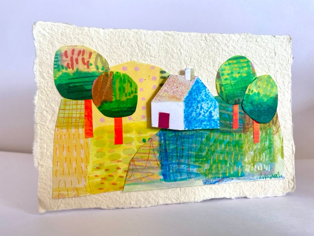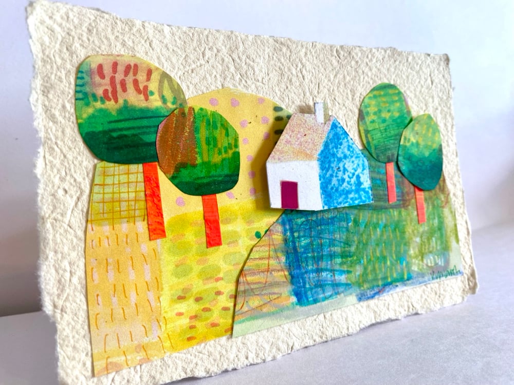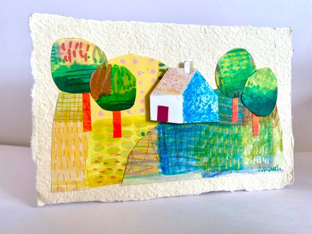 Hill house is a small original artwork of hand painted papers and a small illustrated house to create the image.